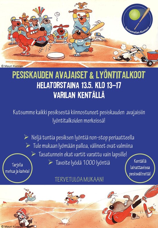 Pesiskausi Sastamalassa lyödään vauhtiin sanan varsinaisessa merkityksessä 13.5. eli helatorstaina. Tuolloin Sastamalan Kumuri järjestää pesiskauden avauksena LYÖNTITALKOOT, jossa kuka tahansa pesiksestä kiinnostunut voi tulla lyömään palloa. Varilan kentällä on luvassa neljä tuntia pesiksen lyöntiä non-stop periaatteella klo 13-17. Idea on hyvin helppo: tule mukaan lyömään palloa, välineet ovat valmiina! Tavoite on lyödä 1000 lyöntiä tapahtuman aikana. Lyöntimäärä kirjataan, jotta tulos voidaan todentaa. Kukin lyöjä lyö aina tarkalleen kymmenen lyöntiä ja käy lyöntiensä jälkeen merkitsemässä nimensä lyöntilistaan. Tasatunnein ekat vartit on varattu vain lapsille, jotta aika ei heillä menisi jonottamiseen. Palloa voi lyödä kiinniottajille tai verkkoon, jolloin pääsee mittaamaan tutkassa lyönnin kovuuden. Ihan pienimmille on tarjolla myös tiimäinen lyöntiteline helpottamassa lyöntiä. Kaikkien tapahtumassa lyöneiden kesken arvotaan vielä pesisvälineitäkin. Tapahtumapaikalla on myös pesäpalloja ja räpylöitä kopittelua varten sekä tietenkin pehmovälineitä pienille lapsille. Lyönnin lisäksi on muitakin toimintapisteitä heittoa, syöttöä, näpyjä jne. Tilaisuudessa on jaossa samalla tietoa Kumurin kesän tapahtumista kuten pesiskoulusta ja Lady-Pesiksestä. Myös ilmoittautuminen näihin on mahdollista. Tapahtuma järjestetään terveysturvallisena, sillä THL:n, AVI:n ja Sastamalan kaupungin voimassa olevia suosituksia ja rajoituksia noudatetaan esimerkiksi turvavälit huomioiden. Käsidesiä on varattu jokaiselle suorituspisteelle ja välineitä on paljon. Tilaisuus on täysin maksuton. Kumuri on järjestänyt pienimuotoisen kioskin mehun ja kahvin muodossa. |