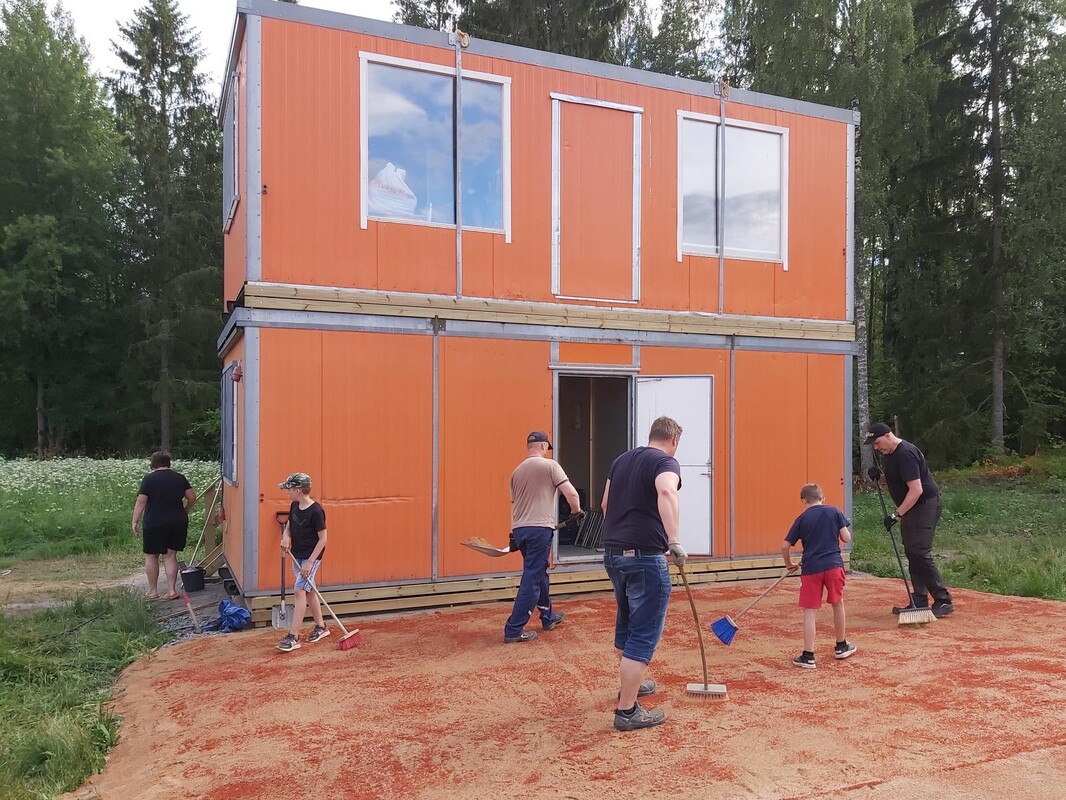 Varilan kentällä tapahtui paljon keskiviikkona. Kaupungin toimesta mitattiin aidan paikat ja parkkipaikan tekeminen käynnistyi. Illalla kentän ympäristön täytti Kumurin talkoojoukko. Keskiviikkona aamuysin ja iltaysin välillä on tapahtunut Varilan hiekkatekonurmikentällä kummia. Aamulla kaupungin ja Kumurin toimesta kenttää kierrettiin tarkkaan mittaillen ja merkiten tulevan aidan linja. Iltapäivällä vedettiin sähköjohtoa maan alle ja samalla alkoi kioskin alustan tekeminen. Illalla kaivurin kauha löi maahan merkiksi siitä, että kentän parkkialueen tekeminen oli alkanut. Kumurin oma talkooryhmä on ollut vähintään yhtä ahkera. Soron tiimi on jo tehnyt pari pitkää talkoopäivää pohjustaen keskiviikon talkooiltaa. Varasto- ja toimitsijakoppien (tuttavallisesti Ala- ja Ylä-Manun) portaat on rakennettu ja kopit ovat muutenkin saaneet ehostusta. Illalla olikin helppo kalustaa koppeja, asentaa hyllyjä seinille, nostaa kaapit paikoilleen ja siivota niin hiekat kuin pölyt pois. Yksi merkittävä illan tulos oli vanhasta kopista tavaroiden siirtäminen uusiin tiloihin. Yksi talkoopoppoo levitti tekonurmimaton paloista vielä varaston eteen mattoa. Kioskikopin vanhaa maalia raavittiin samalla kun päätylistoja maalattiin ja asennettiin paikoilleen. Varsinainen isompi maalausurakka jätettiin vielä parempaa säätä odottelemaan. Toki maalia pintaan saivat syöttölautaset. Uudet lyöntitelineet koottiin ja lyöntiverkot asetettiin paikoilleen. Näin syntyi LC Vammalan ja LC Karkun tukemat lyöntiverkkotelineet, joita heti jo kokeiltiin. Mahtava Kumuriperhe sai illan aikana paljon aikaiseksi. Talkooporukkaa olikin kivasti noin 30 osallistujan verran. Vielä jäi kioskin maalaamisen lisäksi jotakin pientä tekemistä, mutta kenttä tulee olemaan huiman hienossa kunnossa, kun lauantaina 16.7. E-pojat saavat ensimmäisinä pelata uudella kentällä turnaustaan. Uuden Varilan kentän viralliset avajaiset ovat lauantaina 23.7. |