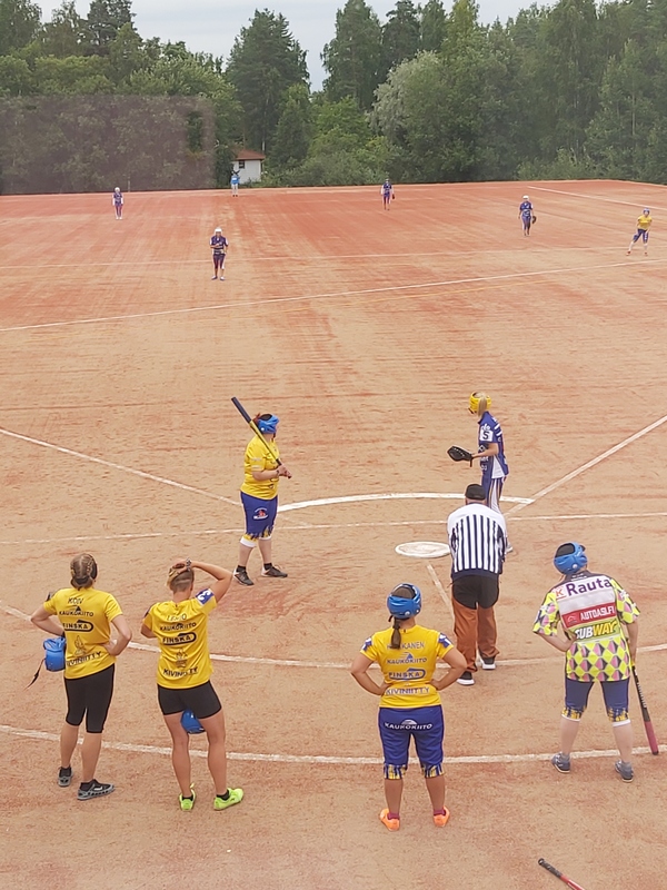 Kumurin naisten kausi jatkui mainiosti tänään maanantaina, kun se iski enemmän juoksuja yhteen peliin kuin koskaan aiemmin. Ensimmäinen jakso oli Ylöjärven Pallon kanssa vielä melko tasainen, mutta toisella jaksolla Kumurin naiset veivät peliä mielin määrin. Kolmen pisteen arvoinen voitto tuli lukemin 2-0 (10-7, 15-2). Kumurin naisjoukkueen sisäpeli on viime aikoina ollut vahvaa. Kumuri takoi juoksuja tasaisesti läpi ottelun. Paras vääntö koettiin kuitenkin jo heti kummankin jakson avausvuorossa. Avausjaksoa joukkue johti jo parhaimmilaan 5-0. Ensimmäisen jakson ratkaiseva niitti oli kolmannessa vuorossa Marjo Iivarin iskemä lyönti, joka yllätti kopparit kunnarin arvoisesti. Toinen jakso alkoi heti iloisesti 7-0 johdolla. Toisen jakson kahdeksas juoksu oli samalla joukkueen kauden sadas juoksu. Pesis100 juhlavuoden kunniaksi joukkue palkitsi heti sadannen juoksun lyöjän Sanna Hinkkasen ja juoksun tuojan Jutta Hirvosen mansikoilla. Marjo Iivarin lisäksi palkintoraati muisti kolme juoksua lyöneen ja kaksi juoksua tuoneen Virpi Lehdon, Ansioita tuli lisäksi niin lukkarina kuin etukentän pelaajanakin. Kolme juoksua iskivät myös peräkkäisinä päivinä hurjassa iskussa ollut Sanna Hinkkanen sekä merkistä taitavasti kotiuttanut Mari Helisevä. Tuotuja juoksua merkittiin peräti neljä Linda Kaasalaisen, Kertu Koivun ja Salla Sankari-Koskisen sarakkeeseen. Ulkopelissä mainiosti pelasi siepparina palloja torjunut Saga Stenberg. Myös toisen jakson lukkaroinut Jutta Hirvonen oli elementissään. Ottelun tilastot löytyvät täältä. Tiivis tahti jatkuu jo perjantaina. Silloin joukkue kohtaa Varilassa Pesäsudet Säkylästä. Luvassa lienee melkoinen trilleri, sillä eilen joukkueet hakivat paremmuuttaan aina kotiutuskisan kautta. Kotiyleisön tuki auttaa. Tämä olkoon vinkkinä, kun klo 18 juostaan kiilaan uudella Varilan kentällä. |