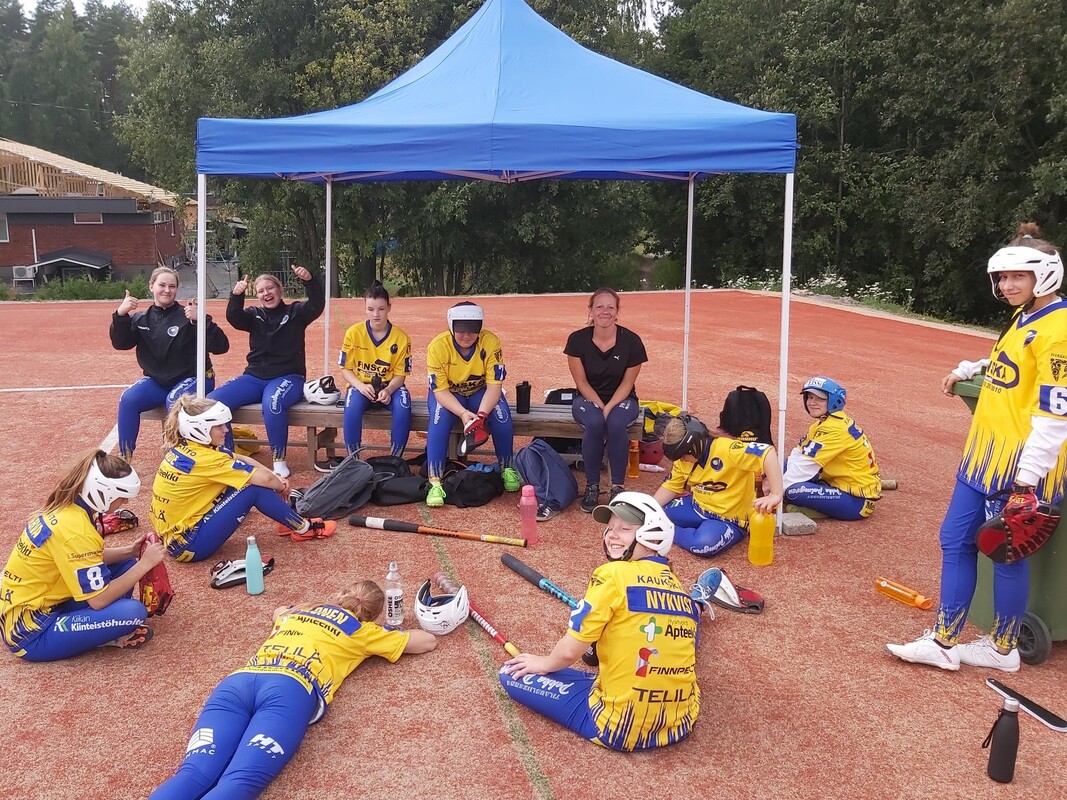 Ottelutulokset: Kumuri – Ylöjärvi 2-1 (4-6, 20-0, 3-2) Ylöjärvi – Turku 1-2 (3-2, 4-7, 0-1) Kumuri – Turku 1-2 (3-1, 10-13, 0-3) Ennakolta hieman altavastaajana päivään lähtenyt Ylöjärven Pallo pelasi pirteästi ja osoitti kehittyneen huimasti kesän aikana. Joukkue pääsi myös yllättämään Kumurin joukkueen aamupelissä vieden ensimmäisen jakson juoksuin 6-4. Toisella jaksolla Kumurin tytöt sisuuntuivat ja veivät sen peräti 20-0. Turnauspäivän peleissä supervuoroa ei pelata ja niinpä ratkaisua haettiin kotiutuskisan kautta. Kumuri oli hieman edellä ja voitti sen juoksuin 3-2. Kumurin joukkueesta pelissä palkittiin upean kunnarin iskenyt Linnea Lähde ja sieppari Frida Nykvist. Kumurin ja Turun/Paimion/Ruskon yhteisjoukkueen peli eteni koko ajan tasaisena. Avausjaksolla Kumurin ulkopeli toimi eikä vierailija juuri päässyt juhlimaan. Toisella jaksolla ote ulkopelissä alkoi lipsumaan. Turku teki tarvittavat juoksut kahdessa vuorossa. Kotiutuskisassa Kumuri jäi kokonaan nollille. Kumurin joukkueesta jokaiselle pelaajalle merkittiin joko lyöty tai tuotu juoksua aivan kuten päivän ensimmäisessäkin pelissä. Parhaina tässä pelissä palkittiin synttärisankari Pihla Joensuu ja kunnarin iskenyt Melina Jalonen. D-tyttöjen seuraava sarjapeli on jo tiistaina, kun klo 18.00 Varilassa pelikumppaniksi kiilaan asettuu Manse PP. |