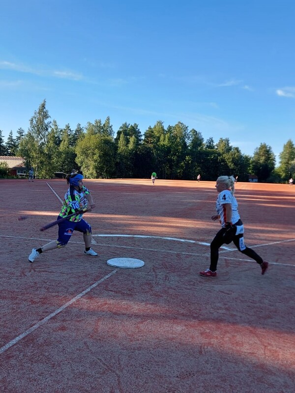 Kumurin naisten mainiot peliotteet jatkuivat kuin elokuiset lämpimät päivät. Joukkue tiesi voitolla saavuttavansa sarjan kakkostilan, eikä tuo luotu painetilanne juuri näkynyt joukkueen otteissa. Puhdas 2-0 voitto Hämeenkyröstä oli jo kesän kolmas ja näin Kumuri saalisti täydet yhdeksän pistettä Räpsän kustannuksella. Tänään Varilassa Kumurin naiset tulivat peliin päättäväisenä. Sitä kuvasti se, että naiset takoivat heti ensimmäiseen sisävuoroonsa neljä juoksua. Tämän jälkeen kumpikin joukkue hoiti mallikkaasti ja varmasti ulkopelinsä. Juoksuja oli vaikea tehdä, sen verran tarkasti napsittiin puolin ja toisin palloja räpylään. Kumurin johto piti ja jaksovoitto lukemin 5-3 kotijoukkueelle. Toisella jaksolla juoksuja oli entistä vaikeampi saada aikaiseksi. Kumuri onnistui tekemään kuitenkin jokaisessa pelaamassaan sisävuorossa yhden juoksun. Koska Räpsä ylsi samaan tulokseen vain kahdessa lyöntivuorossaan, vei Kumuri toisenkin jakson ja päätti ottelun jo ennen viimeistä lyöntivuoroaan. Tällä kertaa jaksovoitto todella niukasti lukemin 3-2. Kumurin toisen jakson juoksut tulivat kaikki merkatuista lyönneistä. Mailan varressa onnistuivat pelikaverin kotiuttamaan Marjo Iivari, Senja Hakkarainen ja Mari Helisevä. Senjan saldo koko pelissä oli hienosti kolme lyötyä juoksua. Kaksi tuotua juoksua kirjattiin Linda Kaasalaisen, Virpi Lehdon ja Sanna Hinkkasen tilille. Yhden juoksun toivat Kertu Koiv ja Saga Stenberg. Juoksun löivät myös Inge Nieminen ja Virpi Lehto. Kumurin parasta tänään oli kuitenkin upean pitävä ulkopeli. Lukkari Virpi Lehto johdatti ryhmäänsä ja teki Räpsän sisäpelistä todella tuskaista. Linda Kaasalainen oli suorastaan ilmiö halliten polttolinjaa. He saivat ansioistaan parhaiden pelaajien palkinnot. Ottelun tilastot löytyvät täältä.