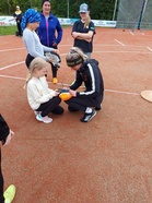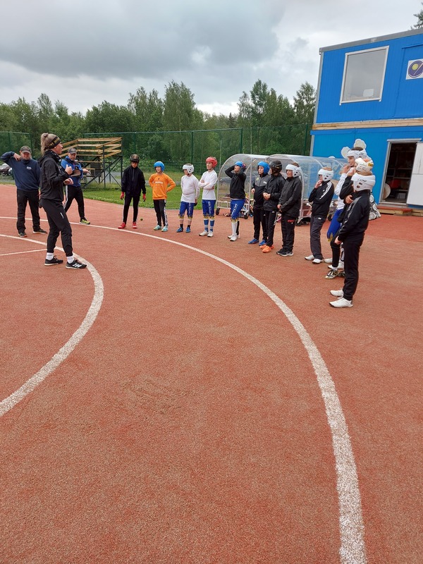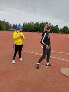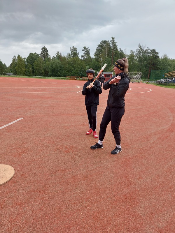 Tänään Kumurin treeneissä nähtiin vierailevana tähtenä Manse PP:n naisten superpesisjoukkueesta Virpi Hukka. Tämän päiväinen vierailu Varilan pesäpallopyhätössä oli Virpille jo toinen, sillä ensivisiittinsä Virpi kävi suorittamassa toukokuun Supervappuottelussa. Ilta alkoi D-poikien treeneillä. Vesisateesta huolimatta jokainen poika keskittyi ja osallistui koko treenien ajan, eikä yksikään valittanut huonosta säästä. Alkulämmittelyksi pojat pääsivät tutustumaan Virpin omaan kattavaan ja koko kehon läpikäyvään alkulämpöön, jossa kenellekään ei varmasti sateesta huolimatta jäänyt vilu. Alkulämppien jälkeen oli vuorossa lyöntitreeniä. Virpi otti jokaisen pelaajan huomioon ja antoi henkilökohtaisia vinkkejä, miten kehittää omaa löyntitapaansa. Lopuksi harjoiteltiin etenemistä, kuinka paljon etenijä pystyy auttamaan lyöjää oikeanlaisilla kärkkymistyyleillä. Poikien jälkeen Virpin oppiin pääsivät yhdistelmäryhmä Kumurin C-tyttöjä ja naispelaajia. Treenit olivat molemmille samanlaiset, paitsi tytöt ja naiset pääsivät onnellisesti treenaamaan ilman kastumista sateen tauotessa. Sastamalan Kumuri kiitää Virpi Hukkaa mahtavista treeneistä, saimme pelaajillemme huikeita vinkkejä jatkoon. Alkulämmittelyn jäljiltä tosin huomenna saattaa olla sellaisetkin lihakset pelaajillamme kipeitä, joiden olemassaolosta emme ennen tienneet vielä mitään. |