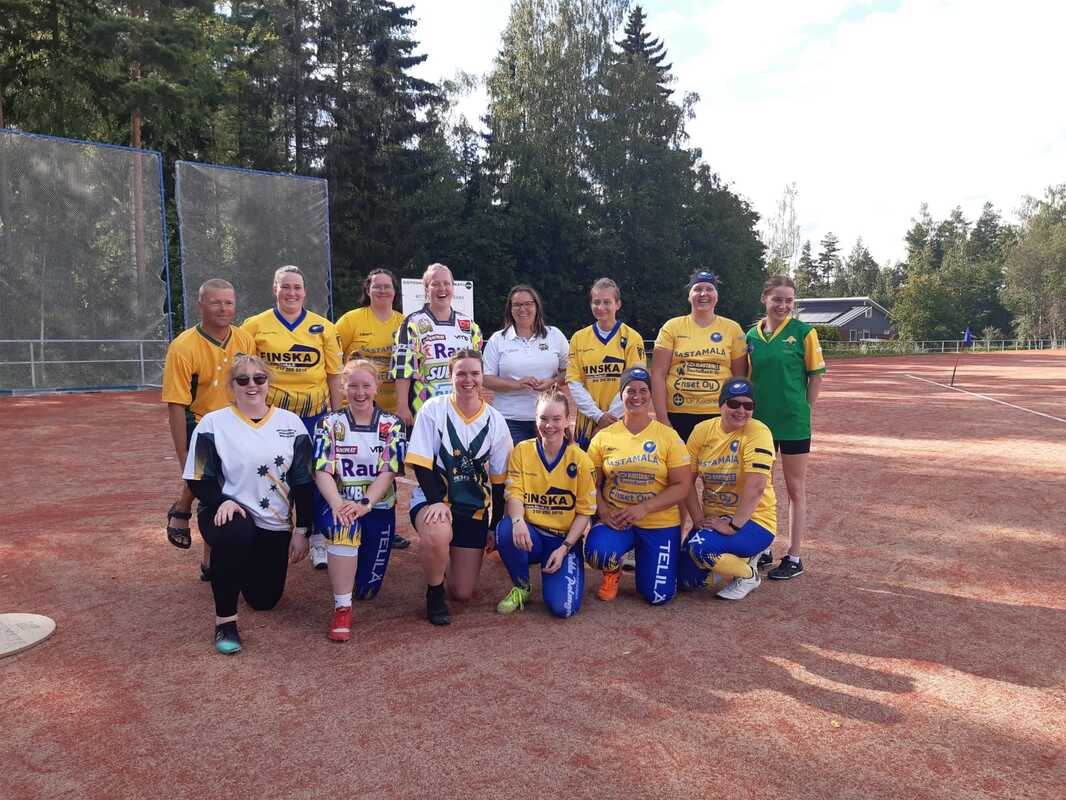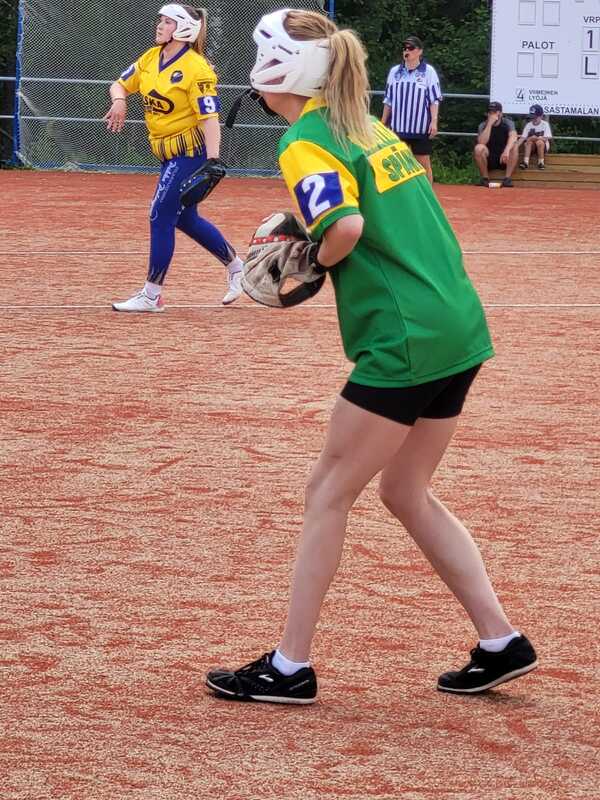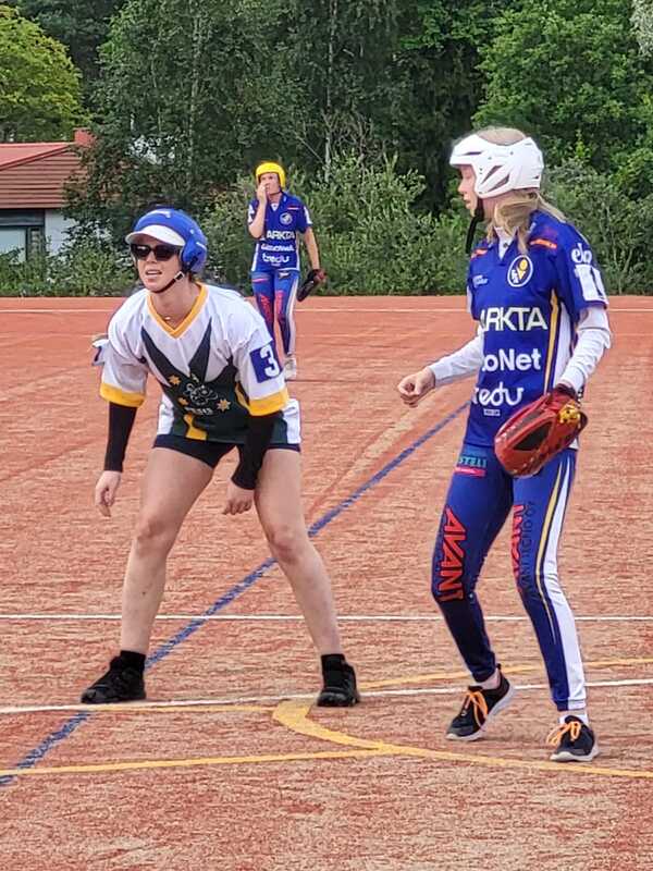Eilisen päivän suurempi mielenkiinto kohdistui silti aluesarjajoukkueen peliin, sillä Ylöjärven Pallon lisäksi paikalle oli saapunut kolme pelaajaa Australiasta ottamaan tuntumaa suomalaiseen sarjapelaamiseen kentältä käsin. Tania Stockmann vartioi tarkasti ulkokentällä Kumurin kolmospesää, Saara Kähkönen napsi ansiokkaasti koppeja polttajana ja Elina Spännäri uurasti siepparin paikalla. Pelinjohtoon Kumuri sai myös australialaisvahvistuksen, kun Mika Mikolan aisaparina toimi Nacke Laukkanen. Pelinjohdon ohjeet olivatkin suomalaisenglantilaiset, mutta tämä ei tuottanut juurikaan ongelmia kumpaankaan suuntaan. Muutoin tilaisuuden arvoiseen suoritukseen Kumurin joukkue ei tällä kertaa valitettavasti venynyt. Liekö keskittyminen ollut muualla, sillä pallo poltteli kovasti etenkin räpylöissä, sisävuorotkin jäivät usein kovin lyhyiksi. Ylöjärven Pallo pelasi rennon letkeästi ja voitti pelin selvästi 2-0 (14-5, 11-1). Pelaaminen australialaisten kanssa oli kuitenkin erityinen ja mieleenpainuva kokemus. Yleisöäkin oli saapunut mukavasti paikalle ja kaiken kruunasi Jarmo Korhosen ajantasainen ja rento kenttäselostus.Ja näytti siltä, että mukavaa oli yhtä lailla Ylöjärven joukkueella kuin aussivieraillakin. Pelin jälkeen Sastamalan Kumurin naiset suuntasivat kohti Ellivuoren rantasaunaa vieraittensa kera. Paikalle saapuivat myös Saaran, Tanian ja Elinan huoltojoukkoja nauttimaan suomalaisesta sauna- ja ruokakulttuurista. Grilli-ilta, uiminen ja saunominen ihanassa kesäsäässä kruunasi kokemuksen.