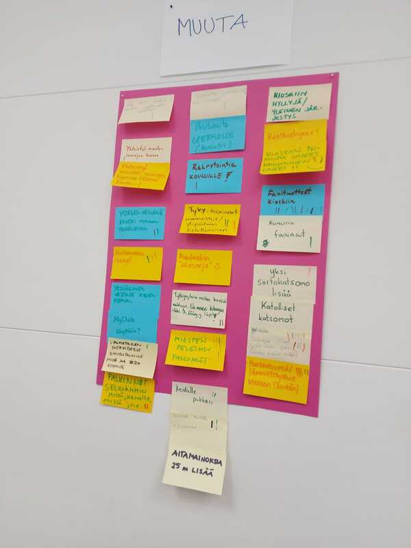 Kumurin puheenjohtaja Sami Ristimäki muistutti päivän tervehdyspuheenvuorossa seuratoiminnan olevan kuin palapeli. Pelaaminen edellyttää pelaajien lisäksi innokkaita valmentajia, aktiivisia vanhempia, sitoutuneita tuomareita, kasvavassa määrin osallistuvia talkoolaisia sekä yhdistyksen hallituksen. Näitä oli tänään paikalla. Paikalla ollut porukka listasi ensin Kumurin tämän vuoden onnistumisia ja lista oli varsin pitkä. Supervappu avasi hyvin monipuolisen kauden. Se olikin eniten tykätty asia tässä kaudessa ja jatkoa toivottiin heti. Varilan pelikenttä oli todella aktiivisessa käytössä. Kehuja saivat niin uudet innostuneet pikkutytöt yhteishengestään kuin miehet voittopeleistään. Pesisautotoimintaan paneuduttiin tarkemminkin ja sen merkitys on tänä kesänä ollut huomattava. Kauden 2023 läpikäynnin jälkeen tartuttiin tusseihin ja post it -lappuihin. Ideoita ensi kesäksi tuli niin, että seinä värittyi vinhaa vauhtia. Superpesiksen näytöspeliä halutaan ensi keväällekin, samoin fanimatkaa kesällä johonkin peliin. Uutena tapahtumalistalle kirjattiin Pesisfestarit. Mitähän tämä mahtaa pitää sisällään? Kumuri toteuttaa ensi vuonna viikolla 20 Pesisviikon. Silloin on ainakin alakoulujen pesisturnaus torstaina 16.5. ja perjantaina Mailan päivänä Lyöntitalkoot. Kumuri aikoo myös jalkautua torille ja pyytää Superpesiksen pelaajaa piipahtamaan Sastamalassa. Tulihan niitä muitakin ideoita. Ainakin viisivuotiaan Kumurin faniasut halutaan pistää uusiksi. Ja edellä mainittujen nostojen lisäksi listaan mahtui parikymmentä muutakin toivetta. Niin sanotusti kansa on puhunut. |