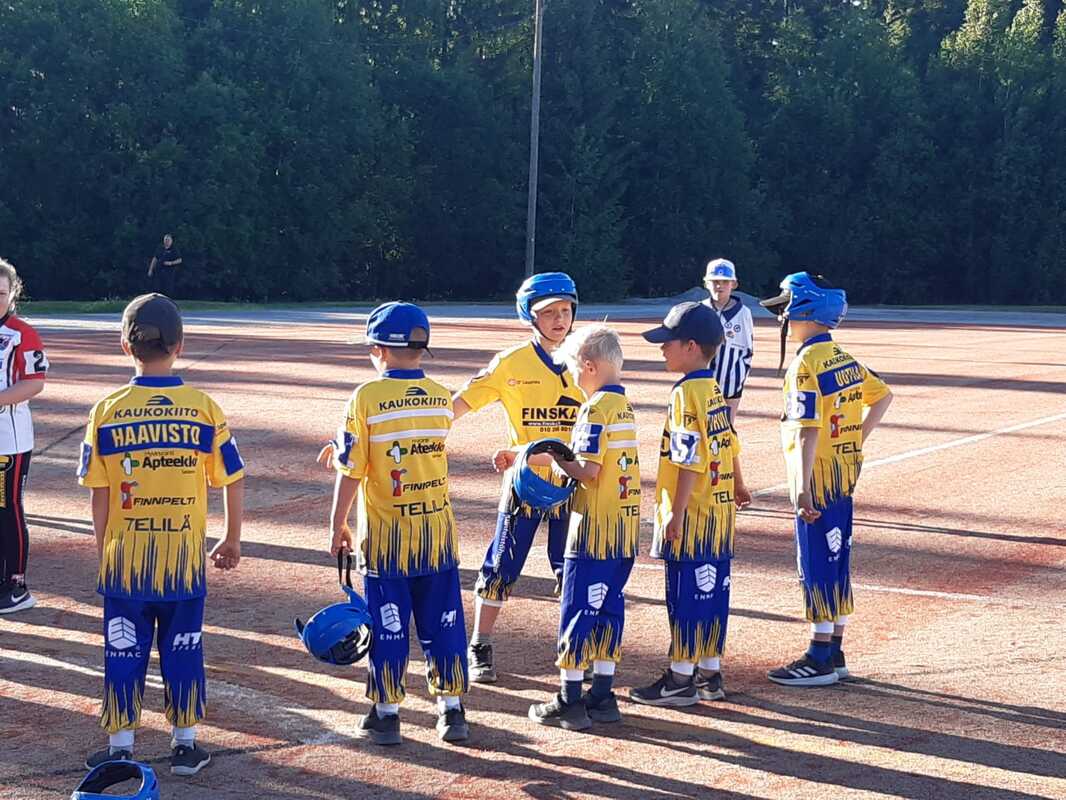 F-pojat jatkoivat reilun viikon takaisen turnauksen malliin voittojen tiellä ja voittivat illan molemmat ottelunsa. Ensimmäisessä ottelussa Manse G Punainen kaatui 18-6 ja toisessa ottelussa Räpsä G Musta 18-10. Pojista otteluissa palkittiin Niilo Ranta-Aho ja Aatu Hirvikorpi. Kumrin F-tytöt pelasivat tänään ensimmäisen pienpesisturnauksen, sillä joukkue on muodostunut vasta tänä keväänä. Vaikka osalla tytöistä oli vain parit treenit takana, löytyi onnistumisen kokemuksia runsaasti. Pelaaminen oli positiivinen yllätys niin tytöille, valmentajille kuin varmaan tyttöjen vanhemmillekin. Tytöt nappasivat ensimmäisestä ottelustaan Räpsän G Mustasta voiton juoksuin 18-17 ja toinen ottelu päättyi tasan 13-13 Manse PP:n G Mustan kanssa. Tytöistä otteluissa palkittiin Aava Widberg ja Veronika Hopia. Seuraavan kerran F-juniorimme matkaavat 24.6. Pelaamaan Humppilaan. |