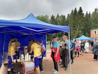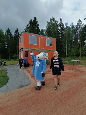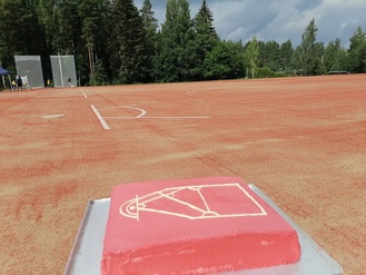 ![]() | ![]() Avajaisissa vieraille tarjoiltiin kakkua pesiskentän muodossa |